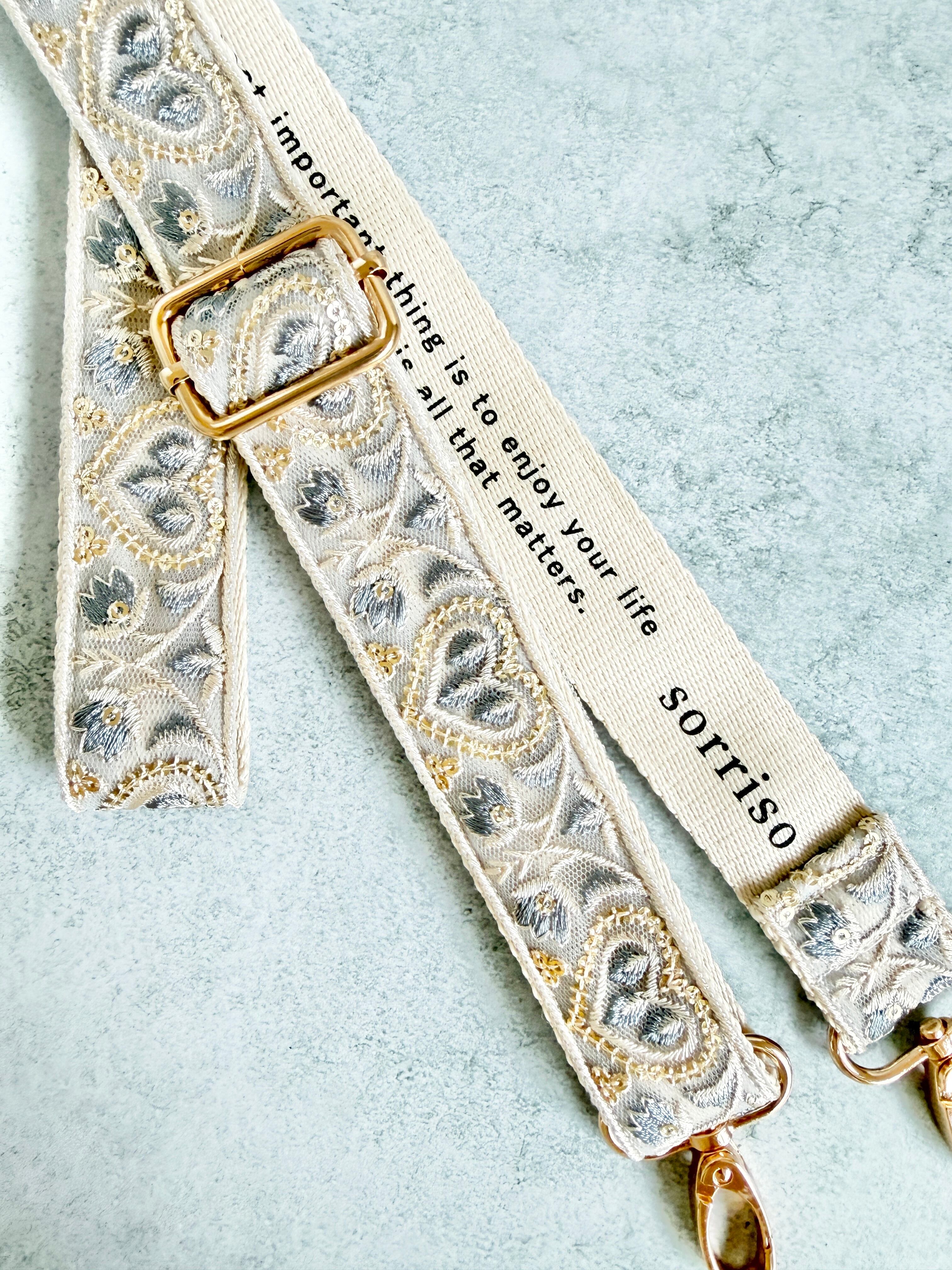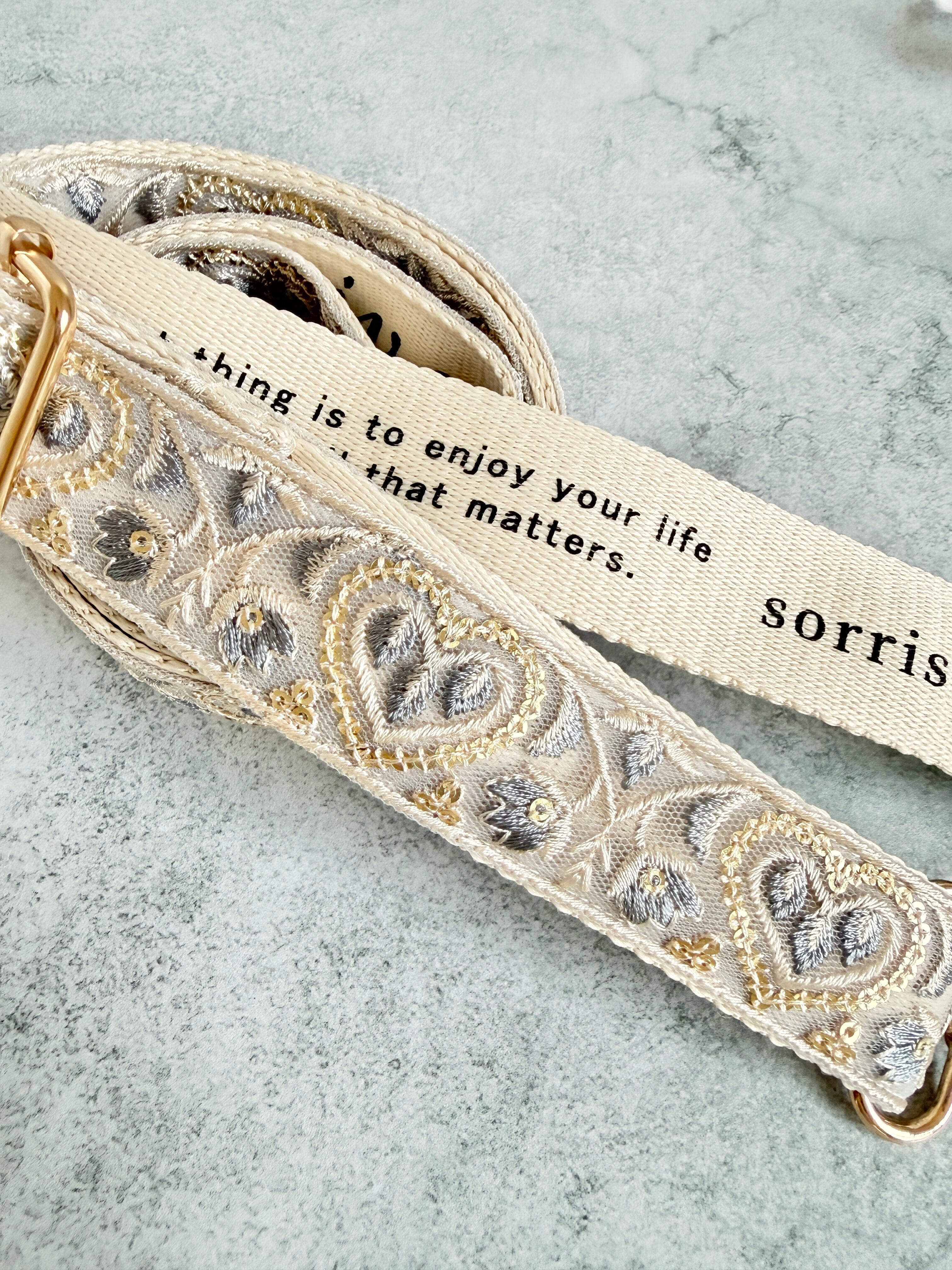 刺繍リボン×ロゴテープの2WAY仕様で、気分に合わせてくるっと裏返せる、便利でかわいいショルダーベルトです♡