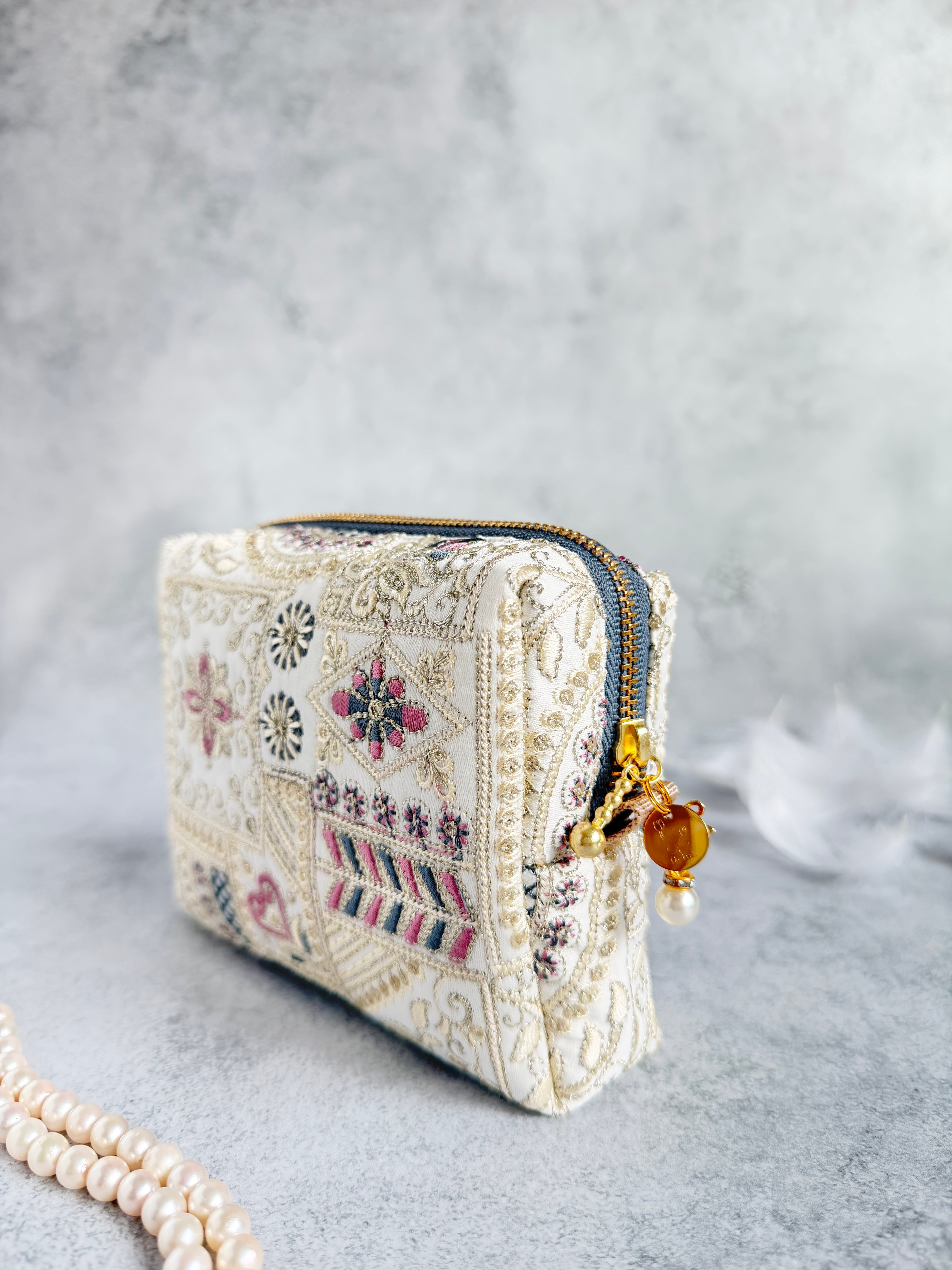 光の角度によってスパンコールがやさしくきらめき、ふと取り出すたびに気持ちが少しやわらぐようなそんな存在を目指しています。