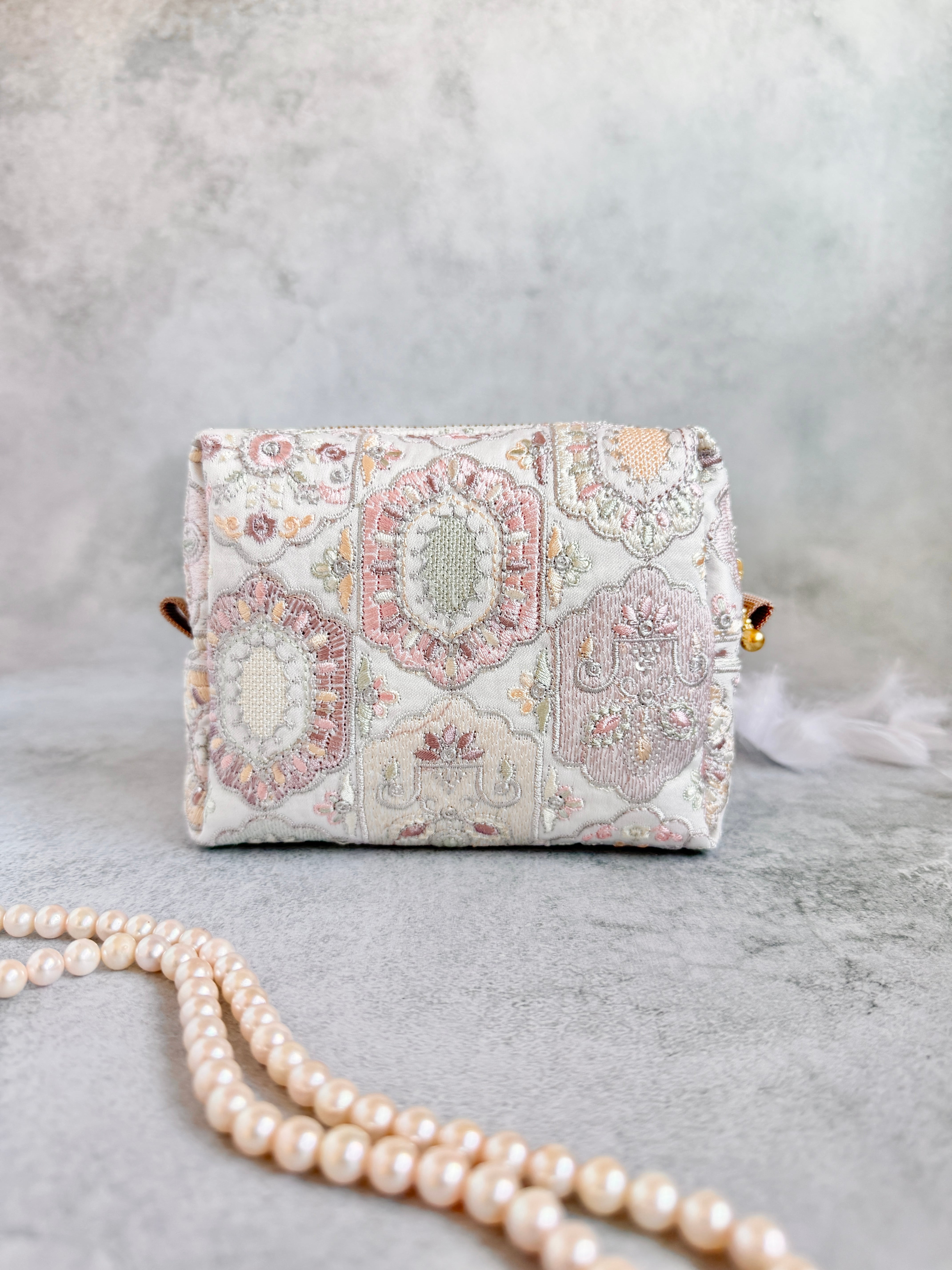 光の角度によってスパンコールがやさしくきらめき、ふと取り出すたびに気持ちが少しやわらぐようなそんな存在を目指しています。