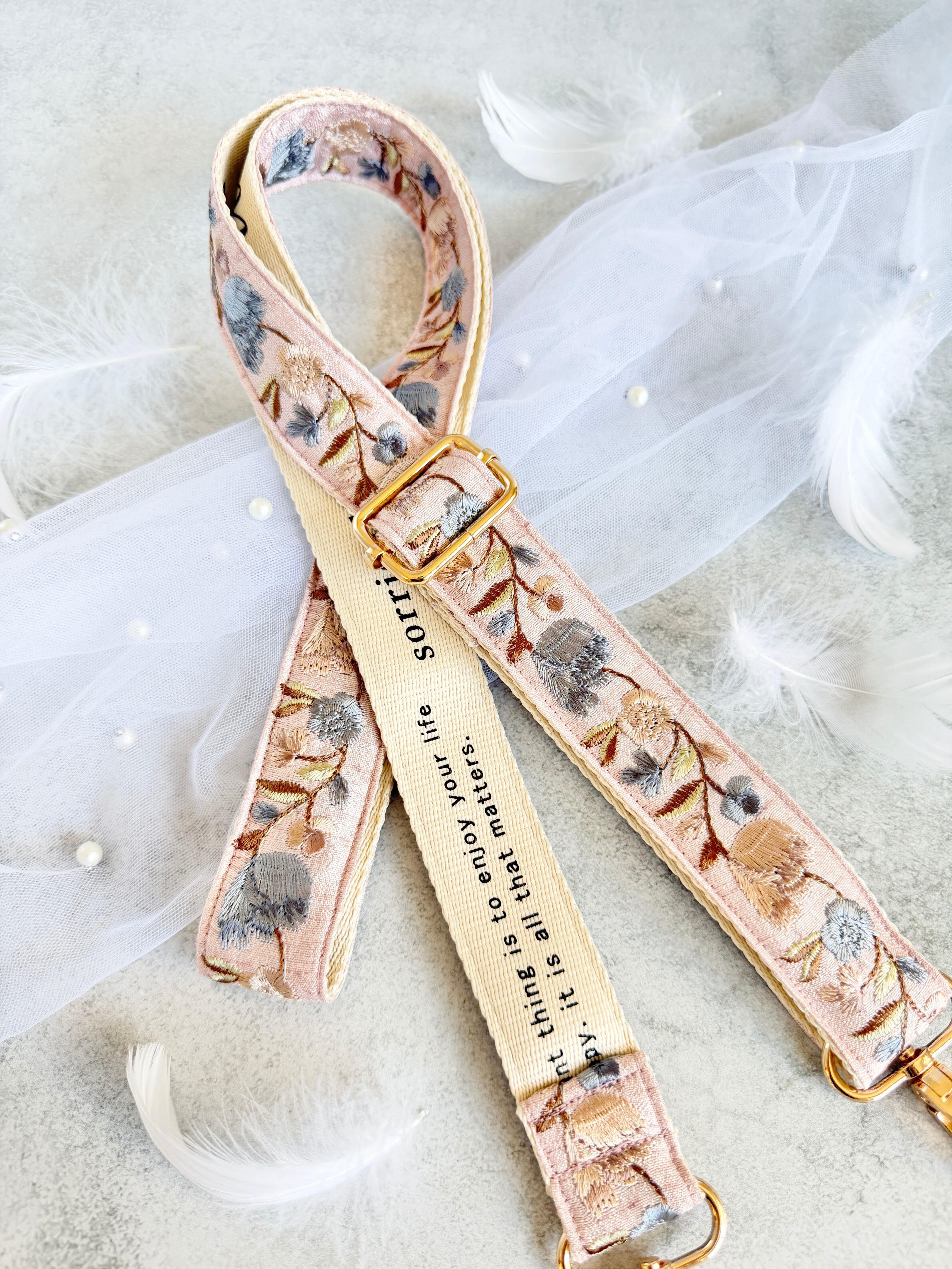 刺繍リボン×ロゴテープの2WAY仕様で、気分に合わせてくるっと裏返せる、便利でかわいいショルダーベルトです♡