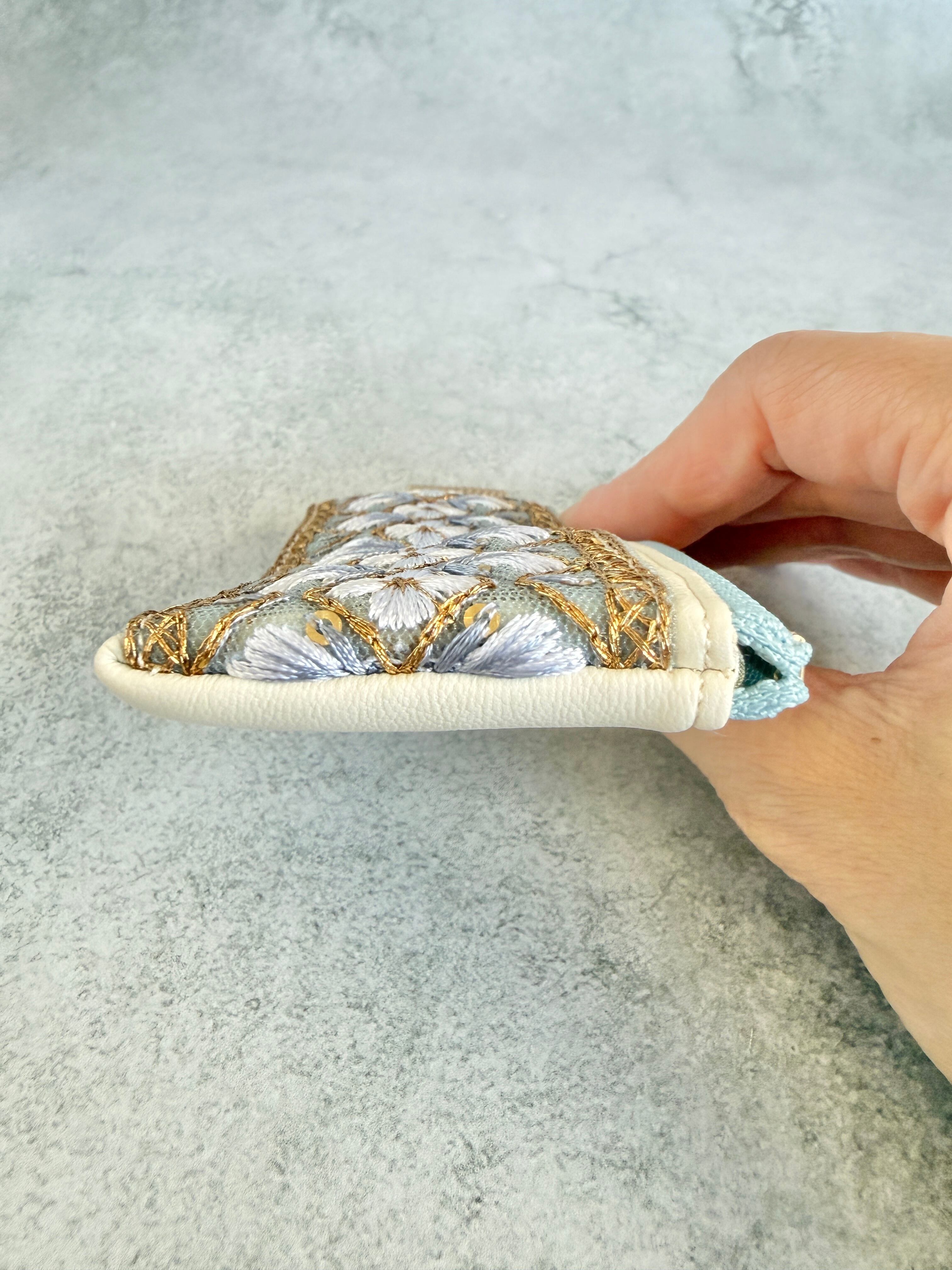 水色の豪華な刺繍♡ゴミ袋ポーチ♡ファスナーも水色で可愛い