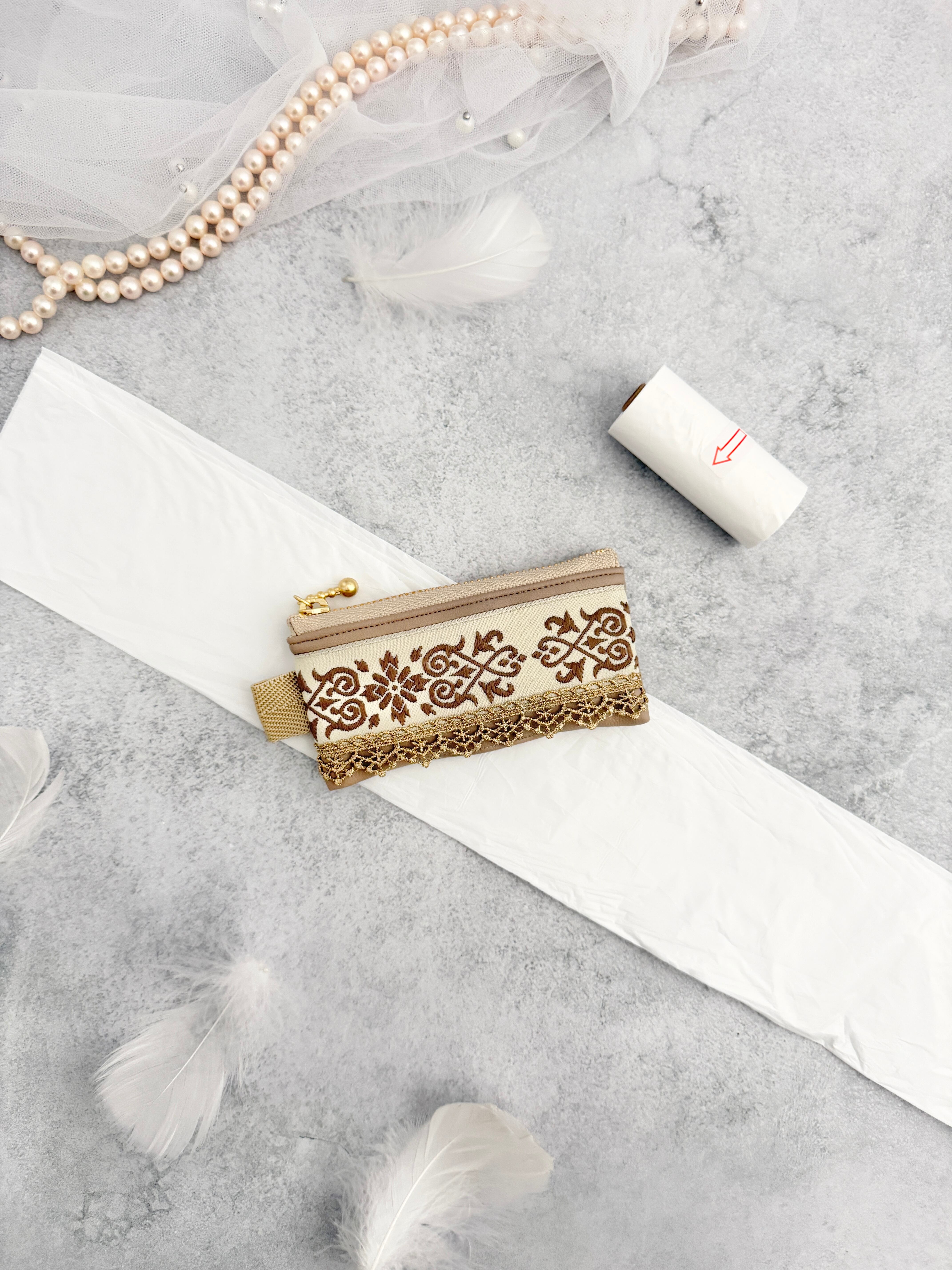 【ゴミ袋ポーチ】トルコリボン♡初、モカカラー♡